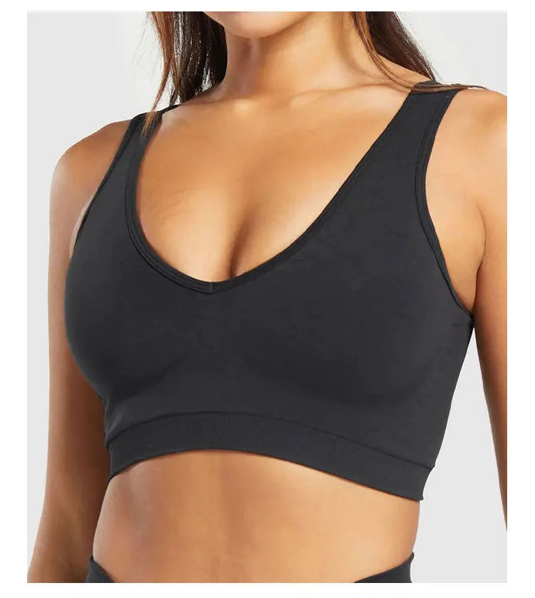 Sports Bra Seamless Halter Neck Strap Bra Open Back Fitness Yoga Top Bras Support Women Workout Gym Crop Top