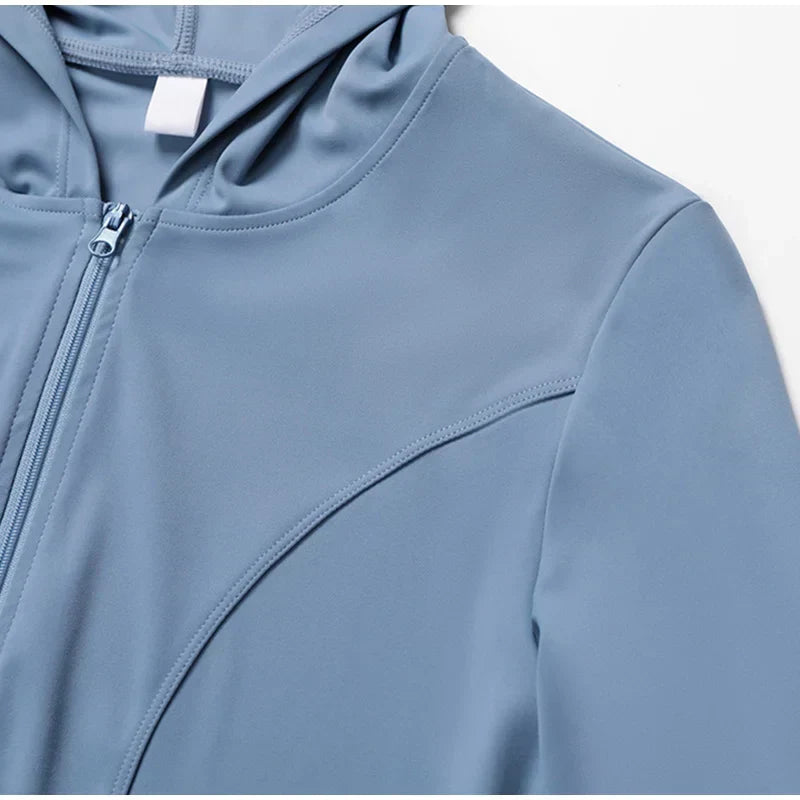 Women Zip Fitness Clothes Long Sleeve Solid Color Sports Jacket Gym Clothes Woman Yoga Shirt Quick Dry Top Sunscreen Sportswear
