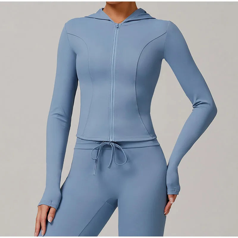 2025 Women Sport Jacket Zipper Yoga Coat Clothes Quick Dry Fitness Jacket Running Hoodies Thumb Hole Sportwear Gym Workout Top