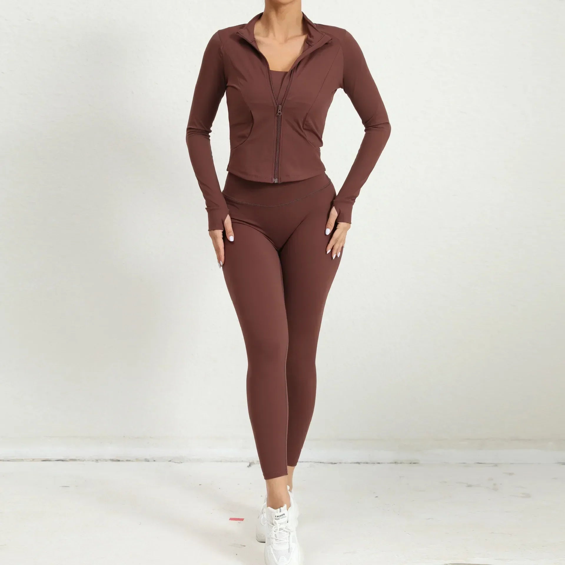 Yoga Gym Sets Jacket Leggings Sportswear Woman Gym Sports and Fitness Workout Clothes for Women 2 Piece Sets Womens Outfits