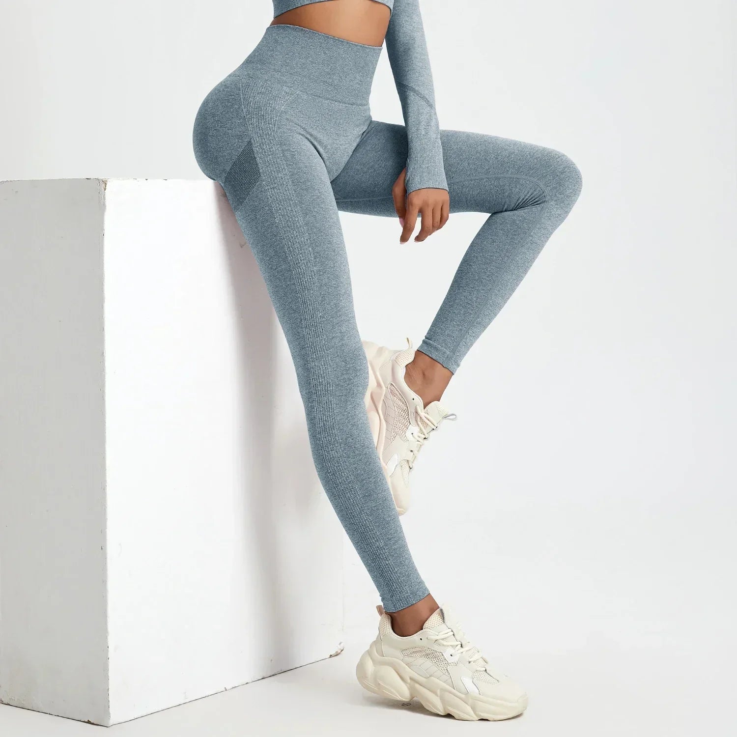 Women's Sports Fitness Leggings Seamless High Waist Stretch Solid Color Yoga Leggings Training Running Gym Quick Dry Breathable